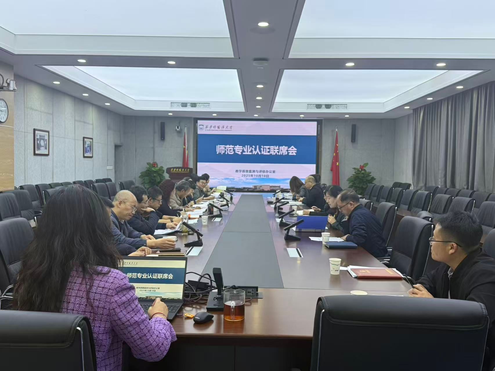 为有效推动我校师范类专业认证相关工作,2025年10月10日下午,学校在长安校区校务楼B304会议室召开了师范认证联席会议,副校长邓滢出席会议,师范类专业建设和认证工作领导小组成员单位负责人,教育学院、中文学院、日文学院、俄语学院党政负责人参加会议,会议由教学质量监测与评估办公室主任李禹主持。